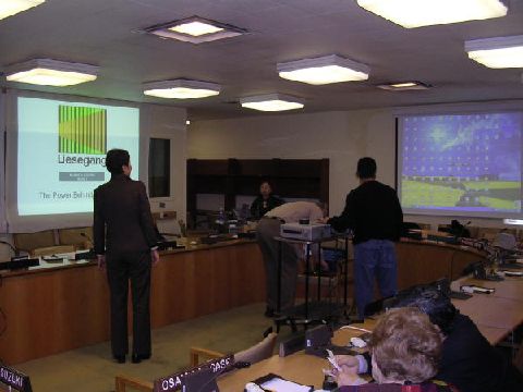 サイドイベントの当日、プロジェクターなどの準備をしているところです。