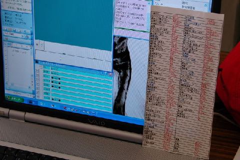 | 定型文は、単語登録しておき、すぐに出せるように工夫しています。右の紙は、単語登録の一覧です。 |