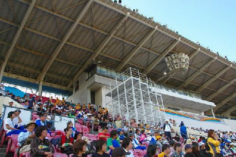 | 入力席は、メインスタンドの貴賓席の上、最上段にあります。大型ビジョンはもちろん、会場全体を見ることができます。 |