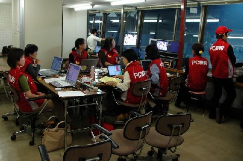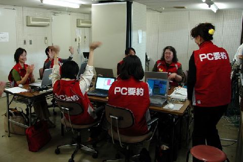 | 入力席の様子です。開会式を経験しているので余裕が感じられます。 |