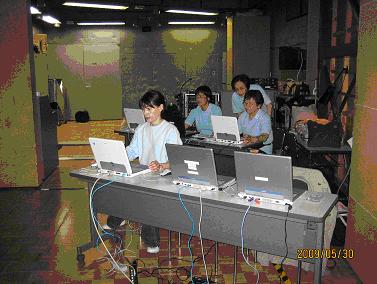 | 上映会では、以下の機器類を使用しました。 @上映用DVDプレーヤー(Avox Acp 500R) A挨拶・上映会に至るまでの説明などパソコン要約筆記用のパソコン(入力2台、表示1台) B@Aを接続したプロジェクター(SONY VPL-EX50) C字幕用パソコン(自動送信用1台、表示用1台) DCを接続したプロジェクター(SANYO LP-XU51(S) ) 苦労したこと、エピソードなど ・IPtalkに初めて画像をつけた: 上映前の要約筆記では、授賞式の画像をつけて説明した。なかなか画像が表示用に送信されず苦労した。本番は無事に表示された。 ・地震のシーンの字幕の表記: 当初は音や様子が変わるごとにスライドを作成したが、映画に集中してほしい場面なので、(地鳴り)(ガラスの割れる音)(粉砕音)(悲鳴)など、なるべく少ない文字で表現した。 ・文字色を変えた: 台詞のある人物が映像に映っていない場合や、ナレーションは文字色を薄い黄色にした。(斜文字は縦書きでは違いが分かりづらいので) ・同じ台詞が10回くらい続く: 子どもを探す場面・犬を探す場面で、同じ台詞(名前を呼ぶ)が続くので、本番に手動送信するのは無理と判断し、自動送信に挑戦した。 ・最終チェックは一人で: 同じような場面や台詞でも、入力者によって少しずつ異なるので、最終のチェックと時間設定保存は一人で行った。何度も映画を見て、字幕の編集をして、とっても疲れました。 |