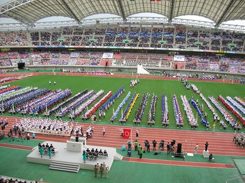 | 2009年10月10日から10月12日まで、新潟県で第9回全国障害者スポーツ大会「トキめき新潟大会」が開催されました。 開会式は新潟市の東北電力ビッグスワンスタジアムで行われました。 新潟県選手団の入場行進です。 |