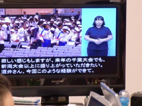 新潟県の「第9回全国障害者スポーツ大会」(トキめき新潟大会)のパソコン要約筆記の様子