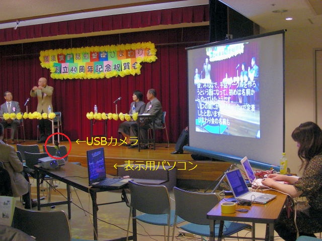 横須賀手話勉強会ひまわり会40周年大会のパソコン文字通訳の様子