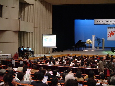 山形市民会館大ホール でおこなわれた「平和の日」リレートークの様子