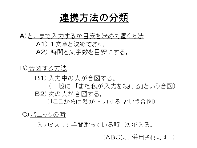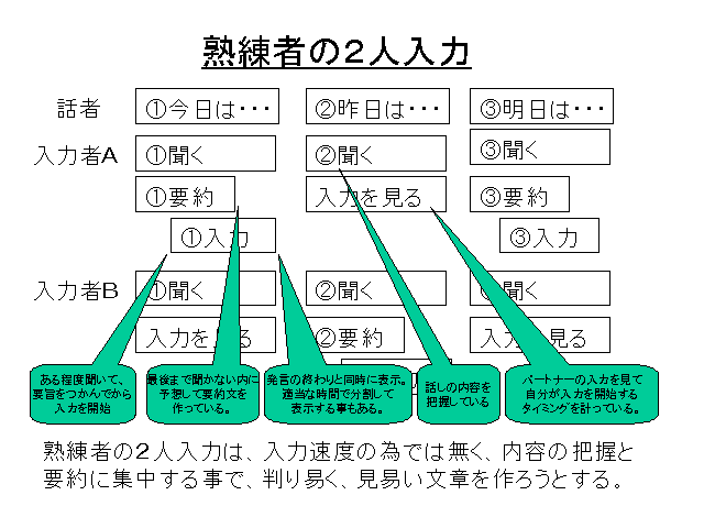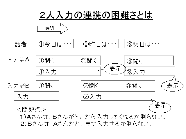 ●2人入力の連携の困難さとそれをカバーする方法の説明です。