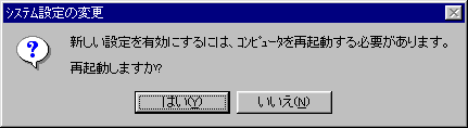 4)変更する場合は、半角数字を入力し「OK」でウィンドウを閉じて行きます。最後に再起動するか聞いてくるので、「はい」と答えます。(下図)パソコンが起動するとIPアドレスが変更されます。