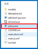 「Julius.exe」を上書き張り付けしたフォルダーに
