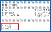 同じ「ssr-kit-v4.4.2.1a」フォルダーの中の「main.jconf」の最後に「-lv 800」と「-fvad 3」の行を追加します。